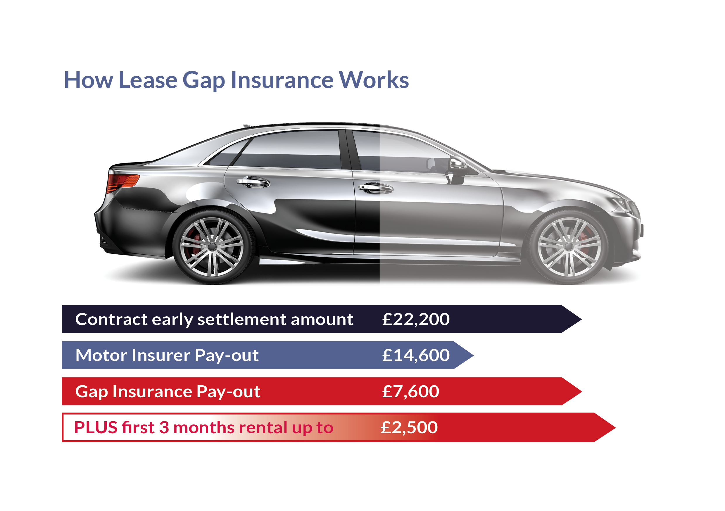 If you leased your car with a purchase value of £21,500, and a year or so later when it’s written off the outstanding finance is £22,200. Your insurer will pay out the market value, which could be as little as £14,600, leaving you with a shortfall of as much as £7,600. If you have Gap Insurance however, this will be covered in full, subject to your policy terms.
